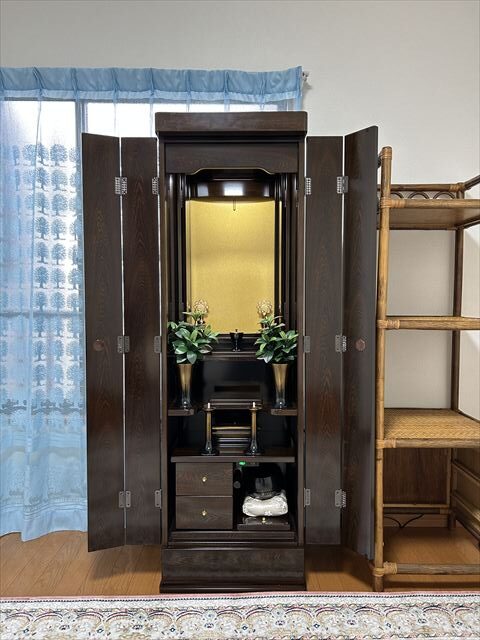 落ち着いたダークブラウン色のモダン仏壇。