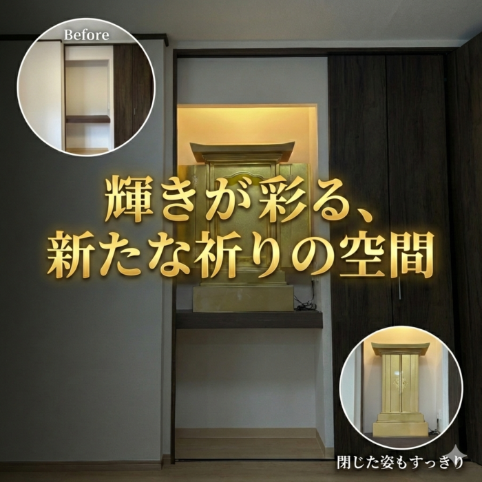 「新しい住まいに、自分たちらしい祈りの空間を。」 このたび、お部屋の改修に合わせて新しいお仏壇を探されていた創価学会のお客様より、ご依頼をいただきました。