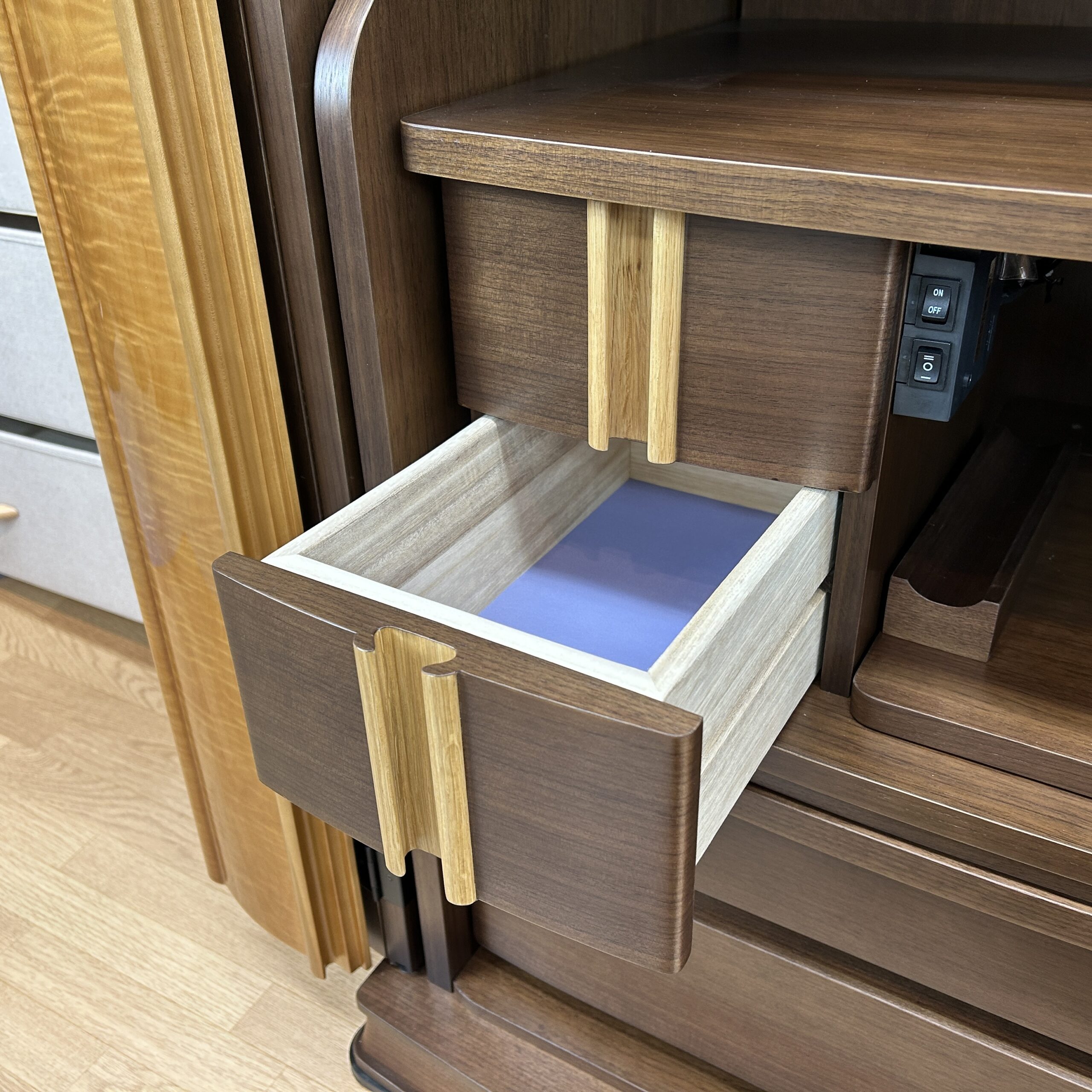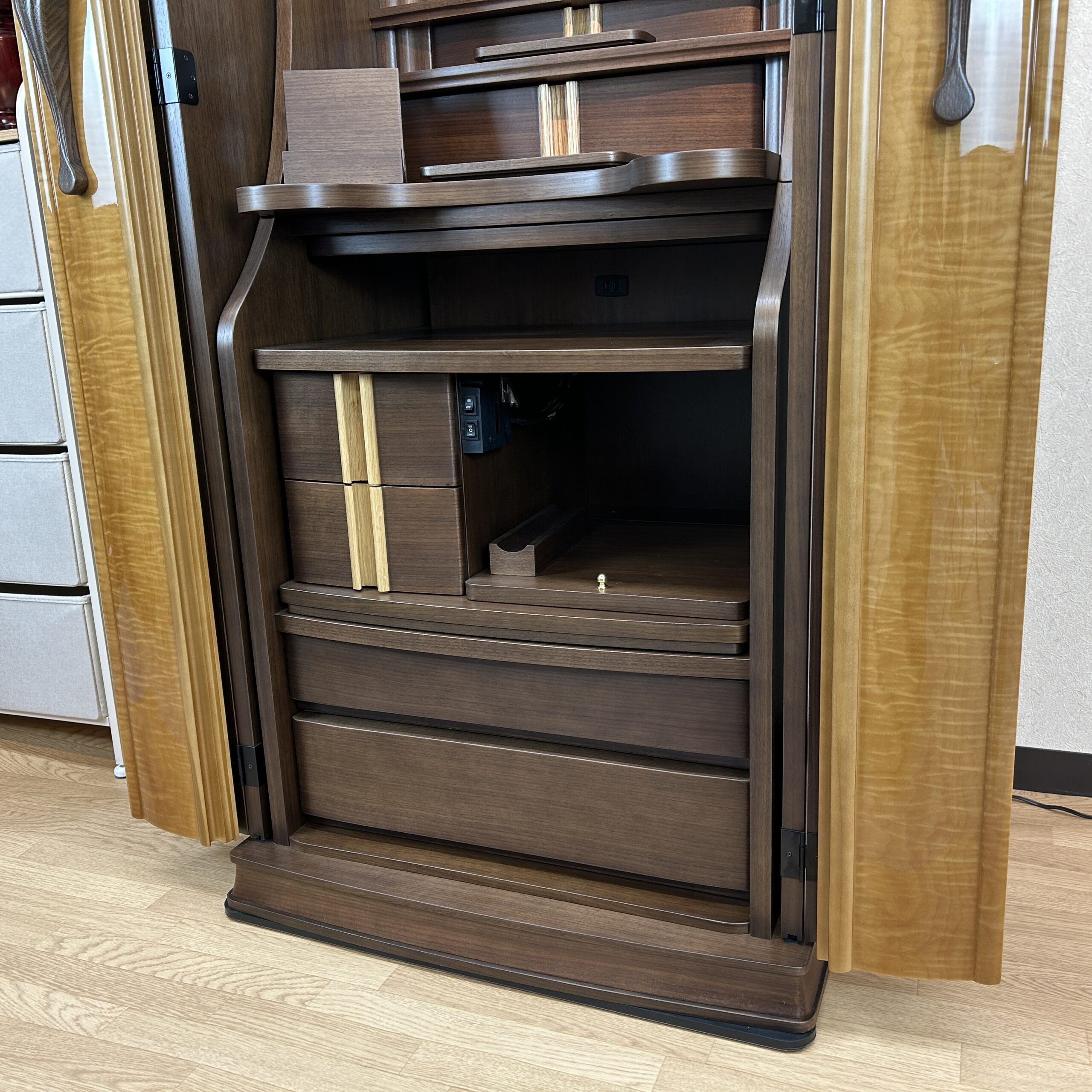 - メープル天然杢・LED照明・電動扉・本金箔押し