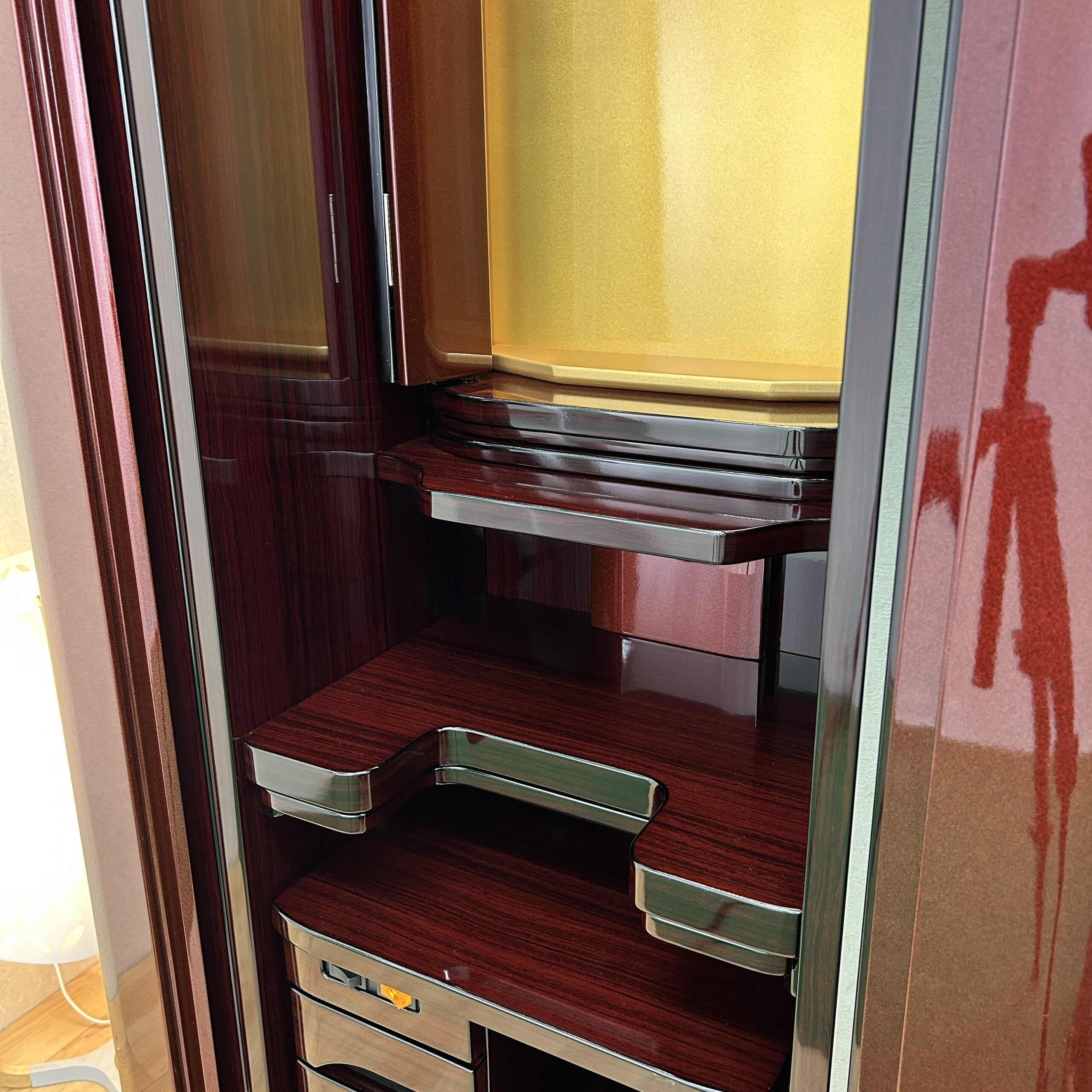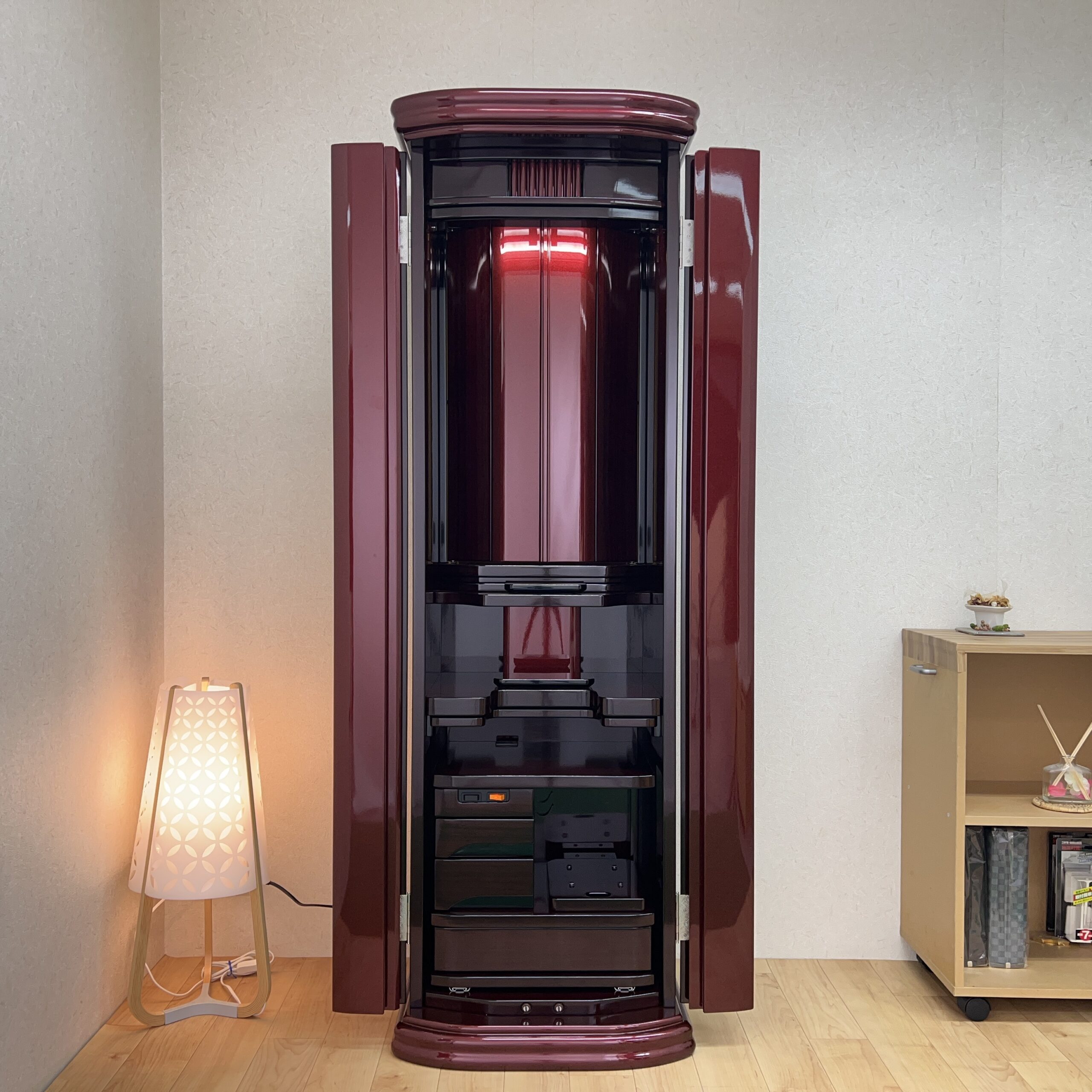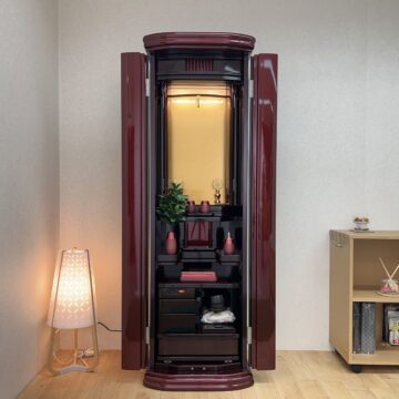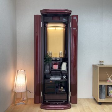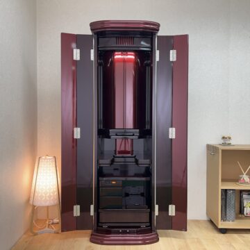 ワインメタリック塗装のモダン仏壇になります。